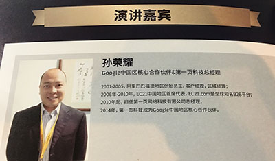 在本次高峰論壇中,第一網(wǎng)絡科技總經(jīng)理孫榮耀先生作為演講嘉賓出席了大會,圍繞《駕馭數(shù)字世界,開拓全球市場》主題分享了數(shù)字化大時代下的電商新思維。在倡導互聯(lián)網(wǎng)+新思維的今天,不斷創(chuàng)新的電商思維對于做跨境電商的外貿(mào)企業(yè)來說,是機遇也是挑戰(zhàn)。為此,孫榮耀先生在本次會議中特別分享了外貿(mào)企業(yè)如何利用好數(shù)字網(wǎng)絡進行跨境營銷。