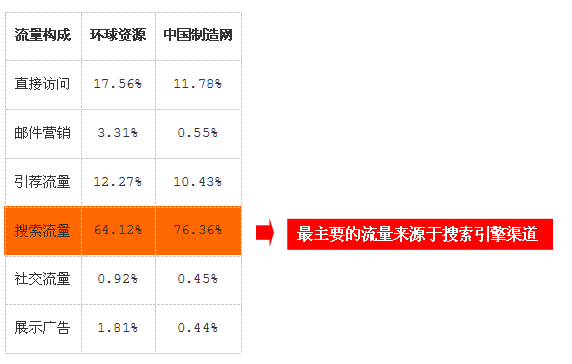 從平臺的流量情況,環(huán)球資源和中國制造網(wǎng)過去一年的流量對比數(shù)據(jù)中,不僅可以了解環(huán)球資源和中國制造網(wǎng)平臺優(yōu)劣勢,還能夠從各種渠道特點中發(fā)現(xiàn)什么才是平臺流量來源的主力軍。