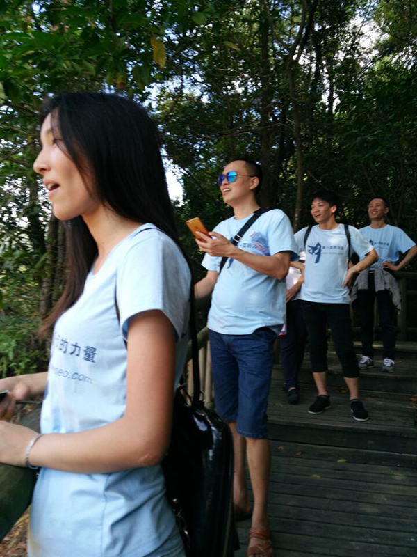 在品嘗了客家媽媽豆腐坊新鮮出爐的美味豆腐花后,我們的團(tuán)隊(duì)開始浩浩蕩蕩的登山之旅。雖然11月的廈門,反常的30幾度高溫讓登山的我們大汗淋漓,筋疲力盡,卻阻擋不了我們的團(tuán)隊(duì)登上高處的迫切心情。登山的旅程就猶如向前邁進(jìn)的人生,雖然長途跋涉,路途艱辛,但只要勇往直前,拼搏向上,就能登上屬于自己的高峰。瞧,一個多么有激情,有活力的團(tuán)隊(duì),在登山途中的有歌聲,有歡笑,互相幫助,你追我趕,一個正朝著同一目的地前進(jìn)的團(tuán)隊(duì),正是那個在工作中一如既往地為同一個目標(biāo)團(tuán)結(jié)拼搏的團(tuán)隊(duì)。