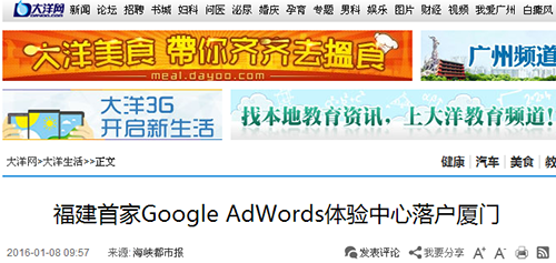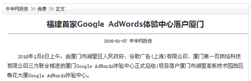 南方區(qū)最重要的Google AdWords 體驗中心落戶廈門啟動運營 感謝政府與媒體的支持與持續(xù)關(guān)注