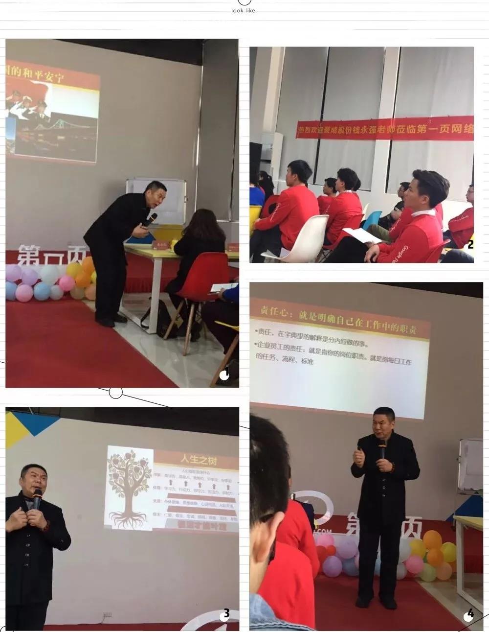為了更好地為客戶(hù)提供服務(wù),提升技能是必不可少的,此次年會(huì)也是難得的培訓(xùn)會(huì),第一頁(yè)網(wǎng)絡(luò)科技特意邀請(qǐng)了著名培訓(xùn)講師錢(qián)永強(qiáng),為小伙伴們帶了一場(chǎng)“以感恩心做人,用責(zé)任心做事”的培訓(xùn)會(huì)。如果說(shuō)分享會(huì)旨在提升我們工作人員的業(yè)務(wù)能力,那么這場(chǎng)培訓(xùn)會(huì)的目的更多的是提醒我們,不忘初心。