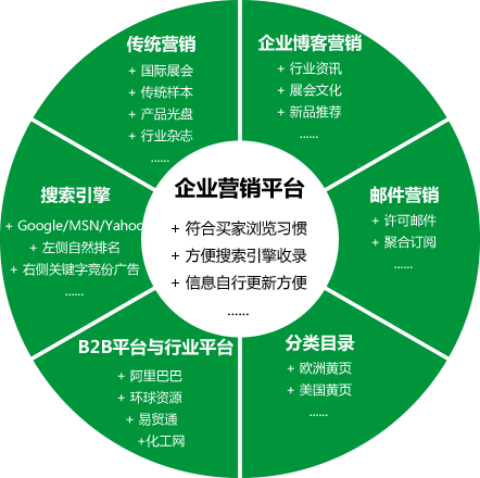 外貿整合營銷是外貿企業(yè)建立一個以自身企業(yè)外貿營銷 型網站為核心的營銷模式,以國外買家的需求和習慣為 基準進行營銷渠道整合,保證海外買家能通過多種途徑 準確獲得外貿企業(yè)的產品信息的一套營銷方法。