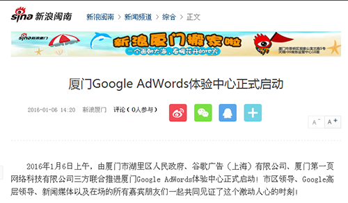 廈門Google AdWords 體驗中心已于2016年1月6日正式啟動。該項目的啟動受到了政府的大力支持以及眾多媒體的持續(xù)關(guān)注。