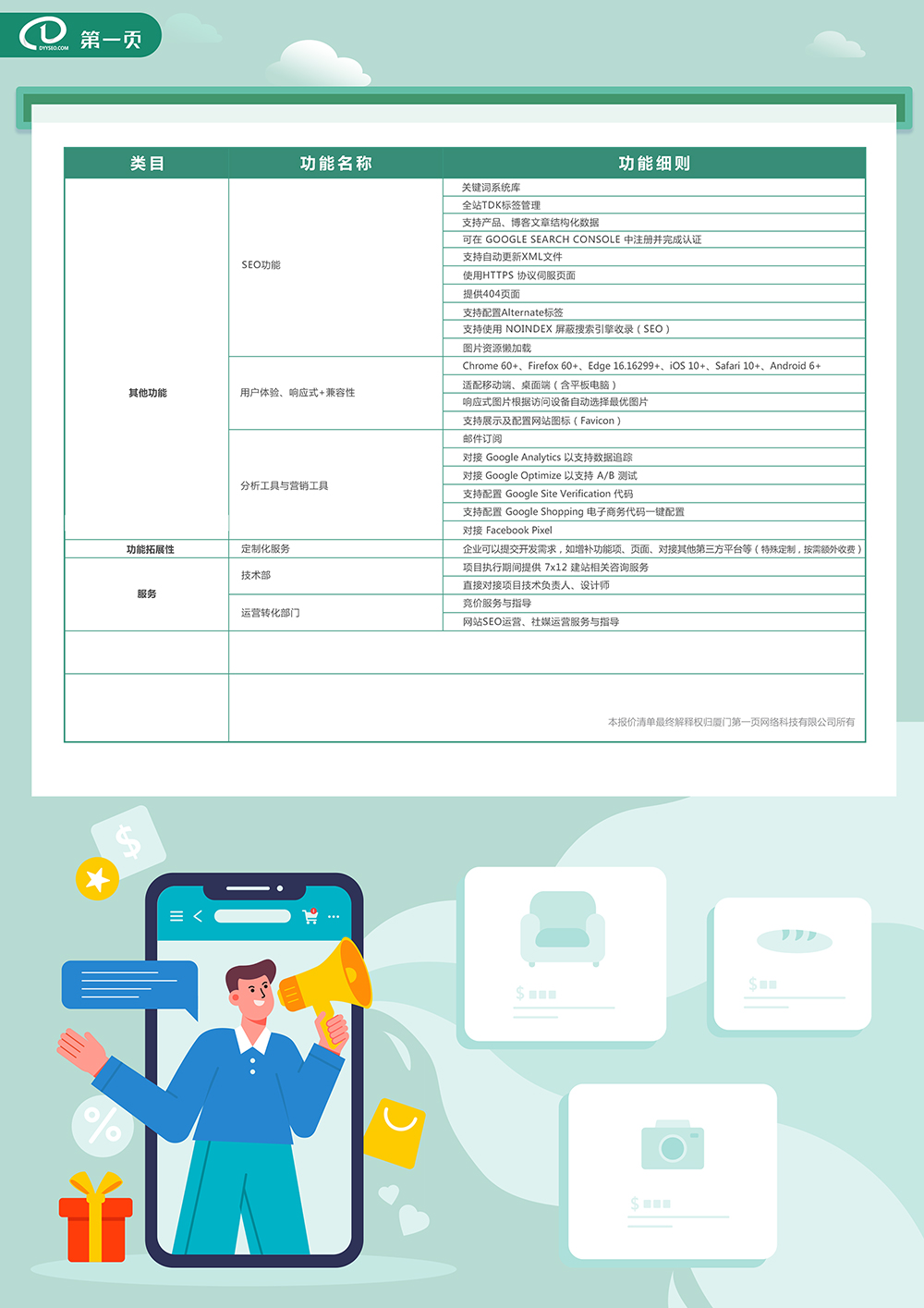 第一頁旨在全方位輔助中國的外貿(mào)企業(yè)揚帆起航成功出海,把產(chǎn)品和服務(wù)推廣到全世界,在用心儲備與計劃了2-3年后,品牌定制商城站(B2C)正式推出推出市場。