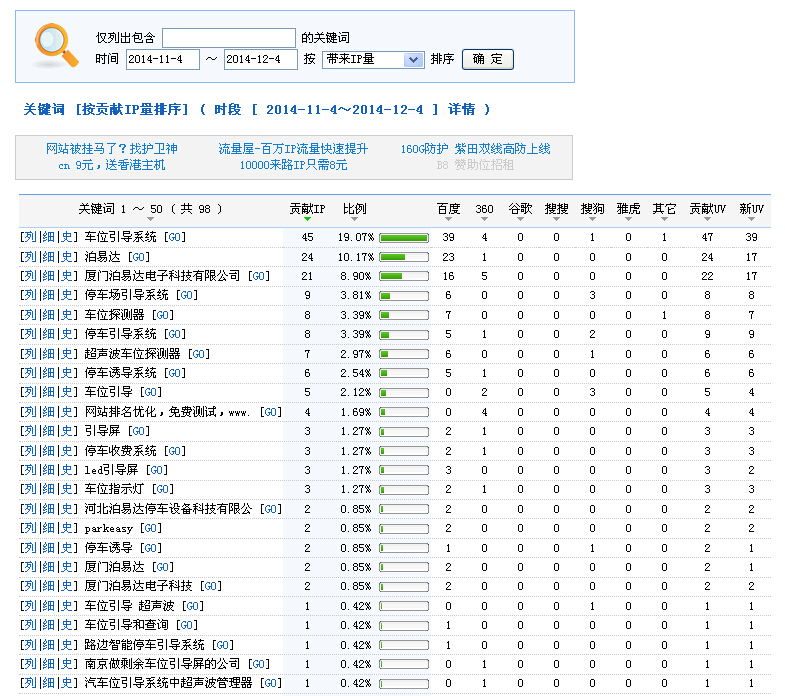 一個(gè)月里通過關(guān)鍵詞搜索來的流量展示: